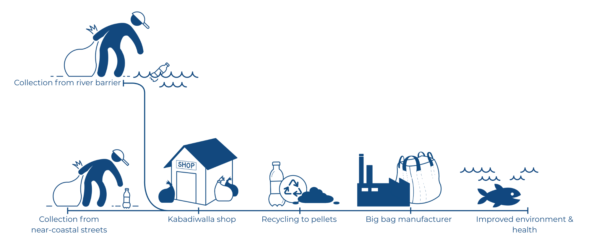 When “waste” is given value and a clear infrastructure to collect and recycle it, such as an end-to-end value-chain, plastic waste pollution can be combated and instead turned into livelihoods and a greener economy.